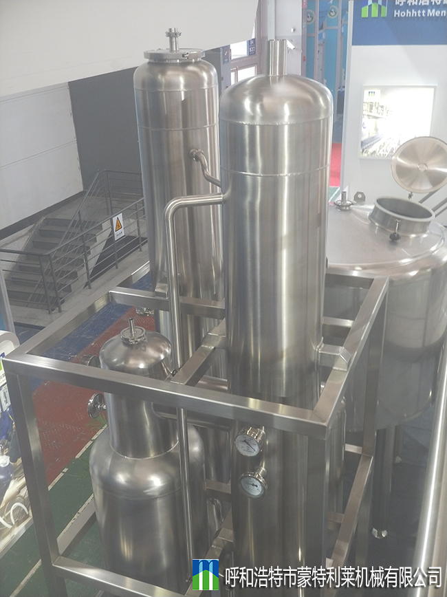 本設(shè)備主要由降膜加熱器 、分離室、冷凝器 、水環(huán)式真空泵、雙機(jī)械密封衛(wèi)生泵、連接管道及電氣控制系統(tǒng)等組成。
